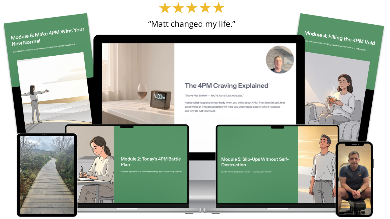 I created The 4PM Reset after seeing how many people in midlife quietly struggle with the same daily pattern - the automatic drink that appears every afternoon. Most advice focuses on willpower or extreme rules, but that approach ignores the real trigger behind the habit.Â
